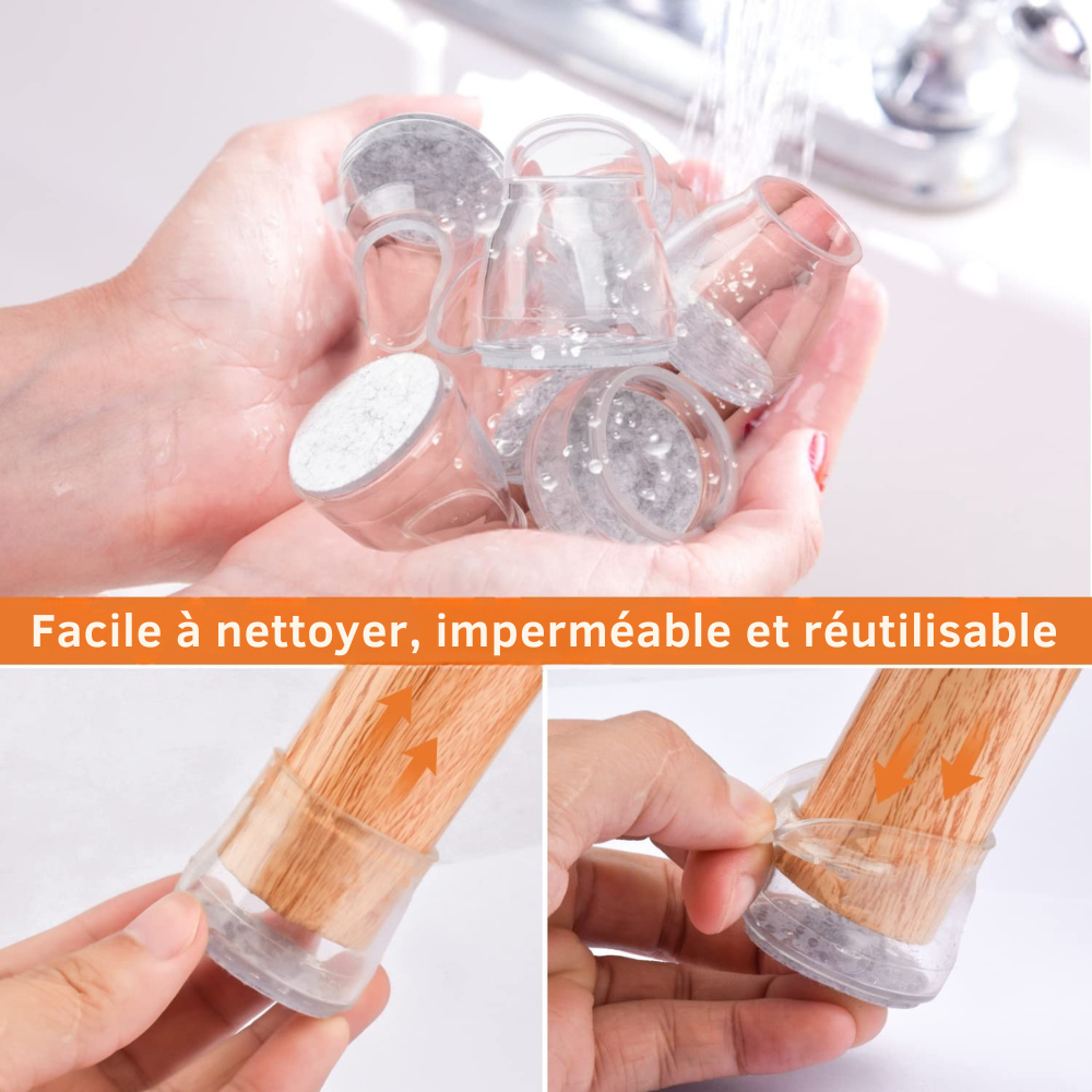 ChaiseFixe™ | Chaussettes invisibles et flexibles pour pieds de chaise – protégez vos sols contre les rayures
